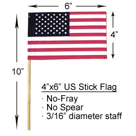 4" x 6" US Stick Flag No-Fray Cotton Price per Gross quantity