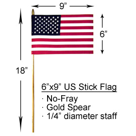 6″ x 9″ US Stick Flag No-Fray Cotton Price per Gross