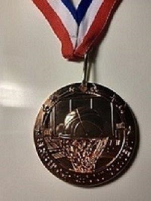 Elks Hoop Shoot Medal Bronze 2 1/2 inch with RW&B Ribbon.