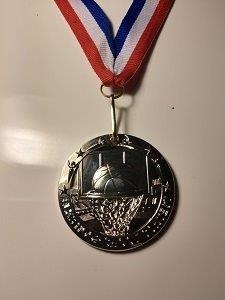 Elks Hoop Shoot Medal Silver 2 1/2 inch with RW&B Ribbon