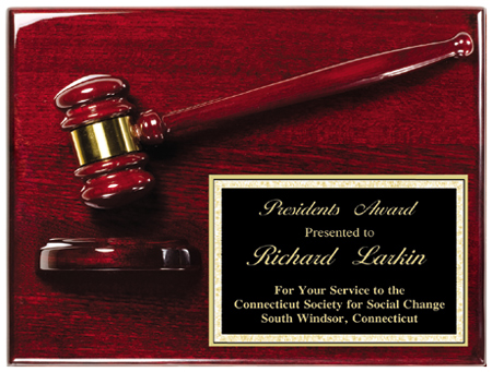 Gavel Plaque Rosewood Finish 9×12 with Gavel and FREE Engraving